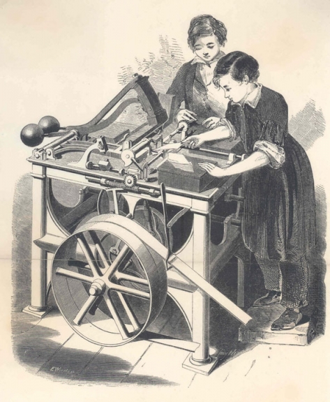 "This machine works at the rate of 2,700 envelopes per hour, and although superseding hand labour in folding, it is satisfactory to find that, instead of displacing hands, its introduction, by extending the consumption, has, in reality, created work for more than it has displaced".